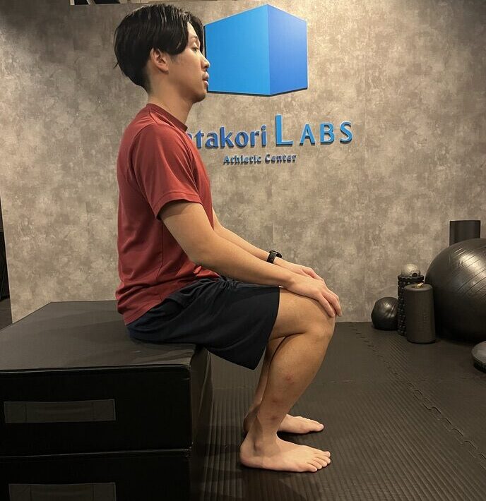 その後、膝が伸びていく過程で腓腹筋へとスムーズに力が受け渡されることで、素早く跳び上がる動きが可能になります。