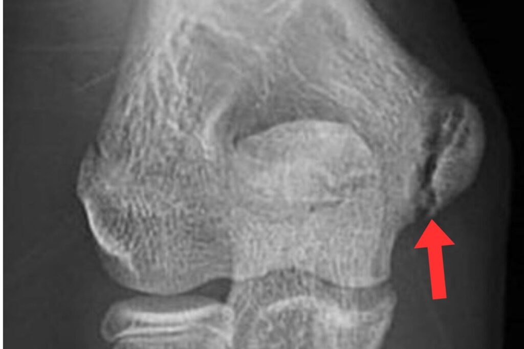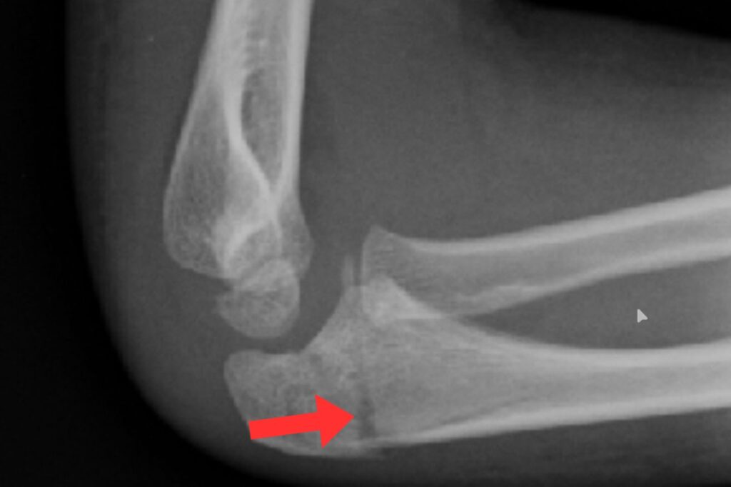 肘の後ろ側のケガ(肘頭骨端線損傷)