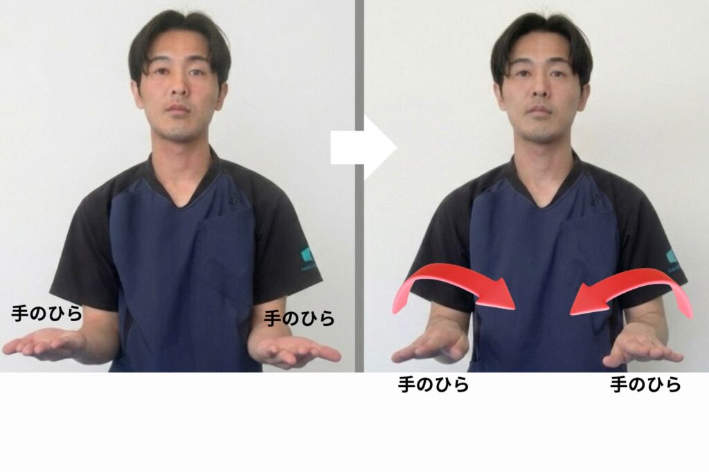 前腕を内・外に回し左右差を確認します。
