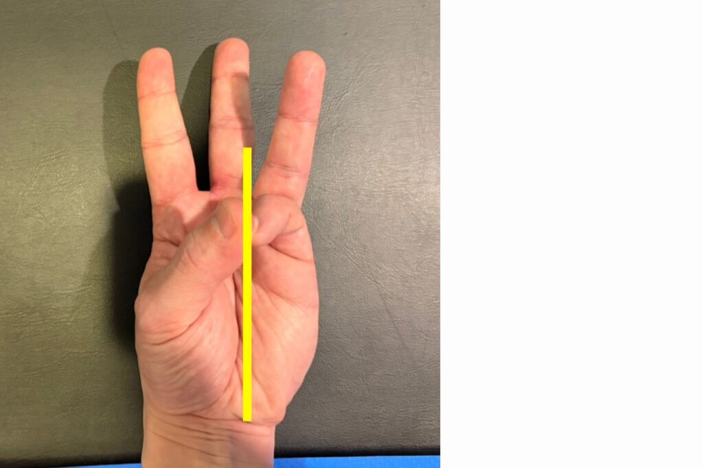 親指と小指をくっつけて一直線になるか確認します。